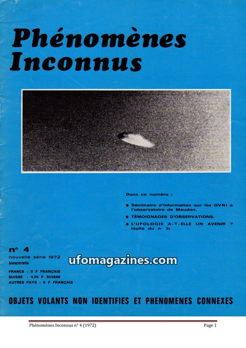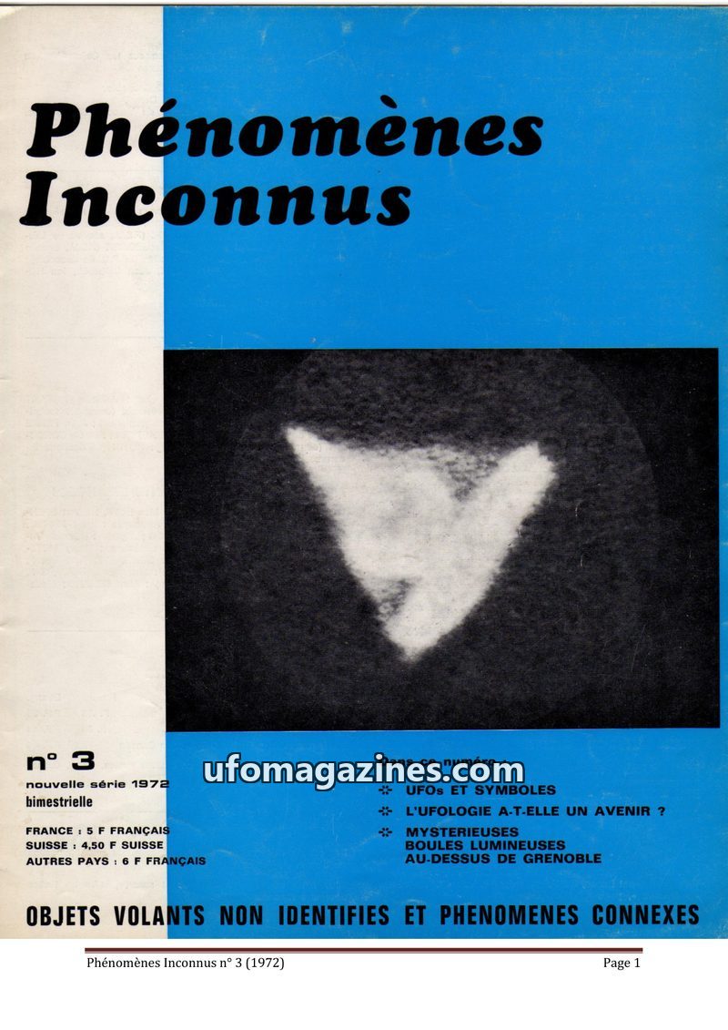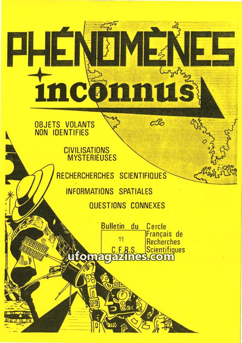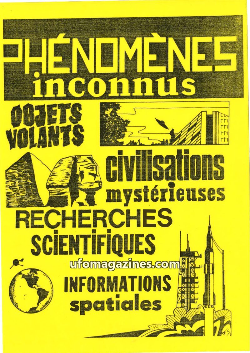 This issue of Phénomènes Inconnus focuses on UFO sightings and related phenomena, highlighting the coordination of ufological research in France and Switzerland. It features detail