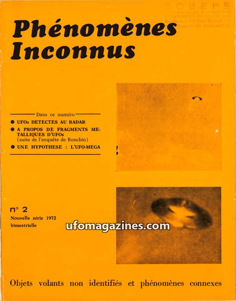 This issue of Phénomènes Inconnus (No. 2, 1972) delves into several UFO-related topics. It reports on radar detections of high-speed objects over Geneva and presents an analysis of