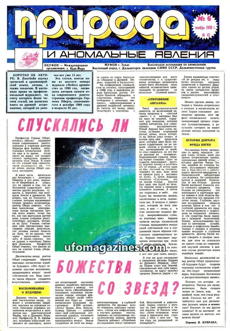This issue of 'Природа' delves into anomalous phenomena and ancient mysteries. It features articles on the theories of Professor Herman Obert regarding ancient astronauts visiting