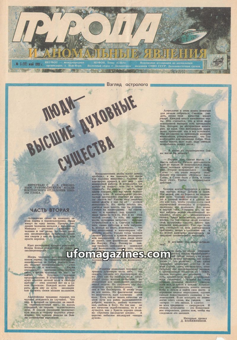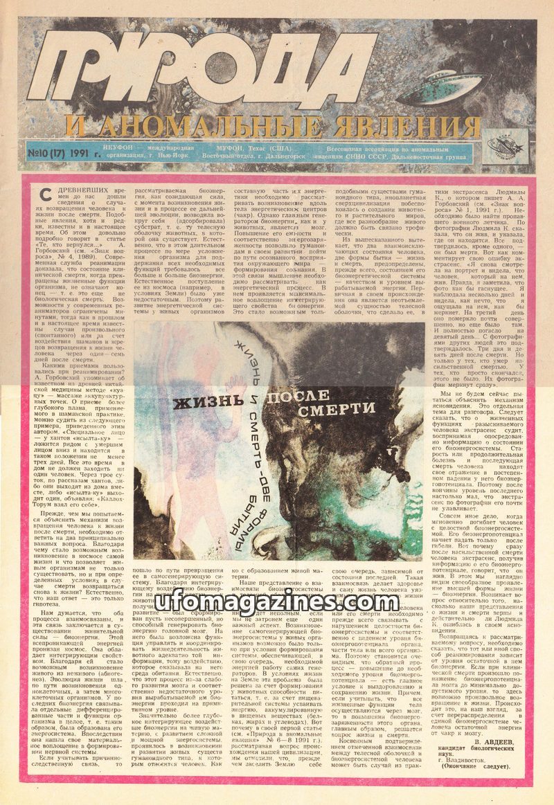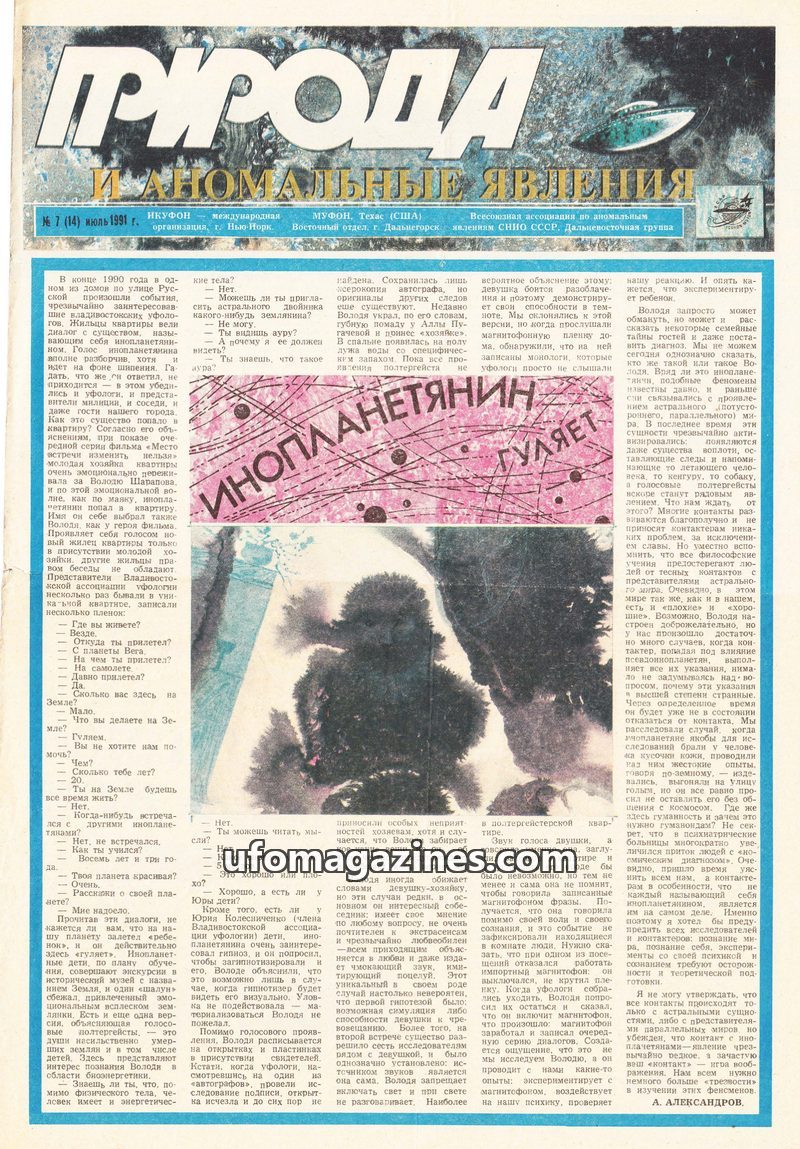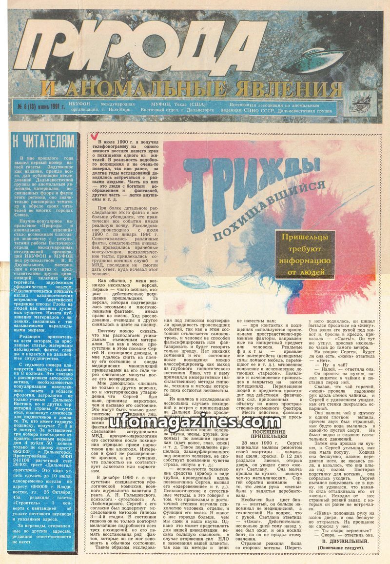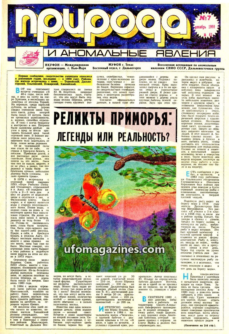 This issue of 'Nature and Anomalous Phenomena' from July 1991 delves into several intriguing topics. A prominent article details an alleged encounter in Vladivostok where a residen
