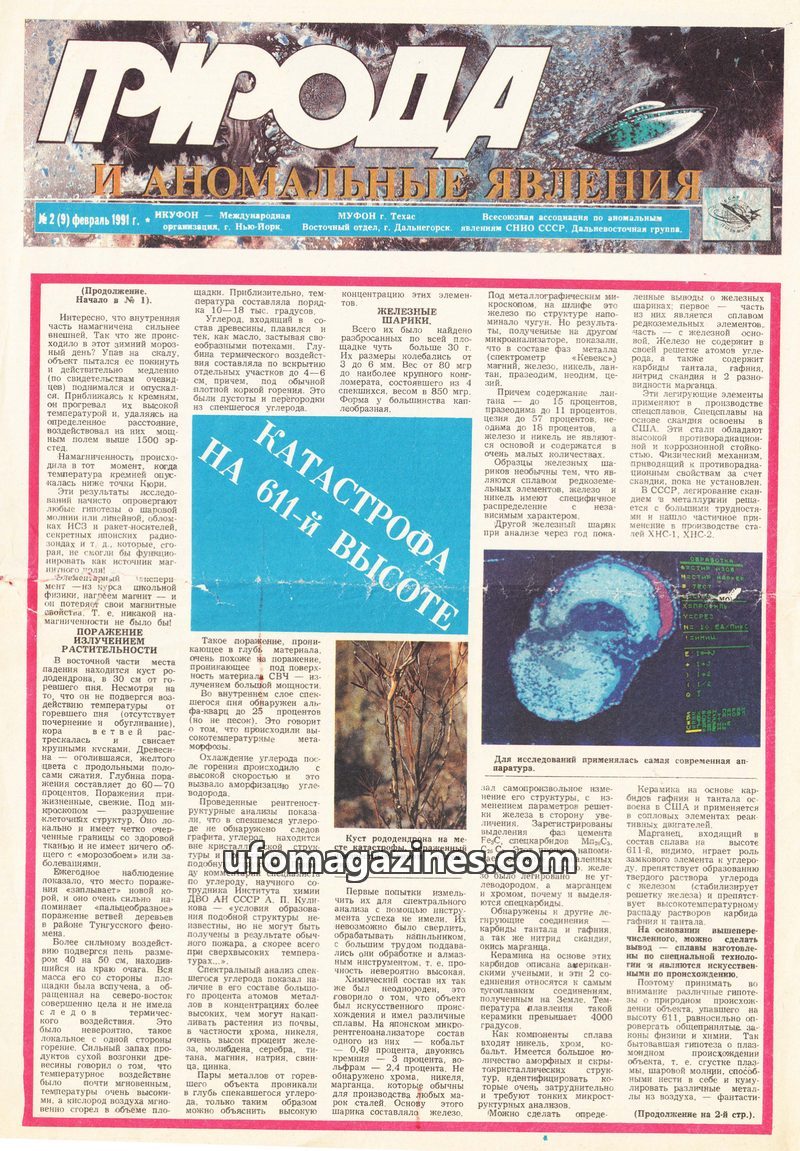 This issue of 'Nature and Anomalous Phenomena' delves into the 'Catastrophe at Height 611,' detailing the analysis of a crashed object's metallic spheres composed of rare earth ele
