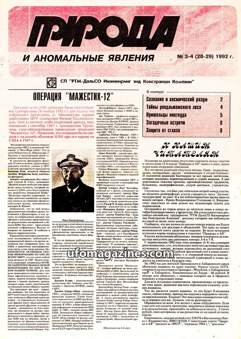 This issue of 'Nature and Anomalous Phenomena' investigates historical sightings of unexplained objects over Tsarist Russia, including a detailed report from 1914. It also extensiv