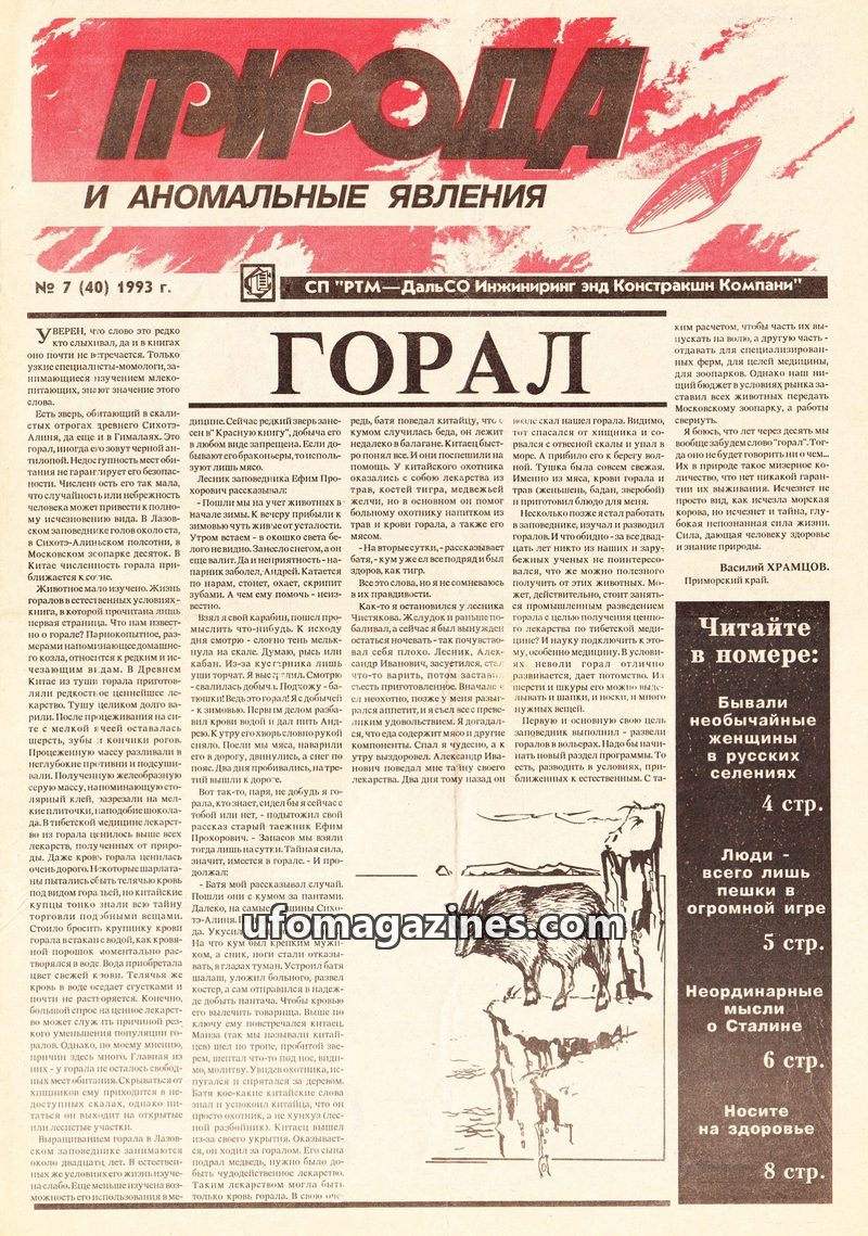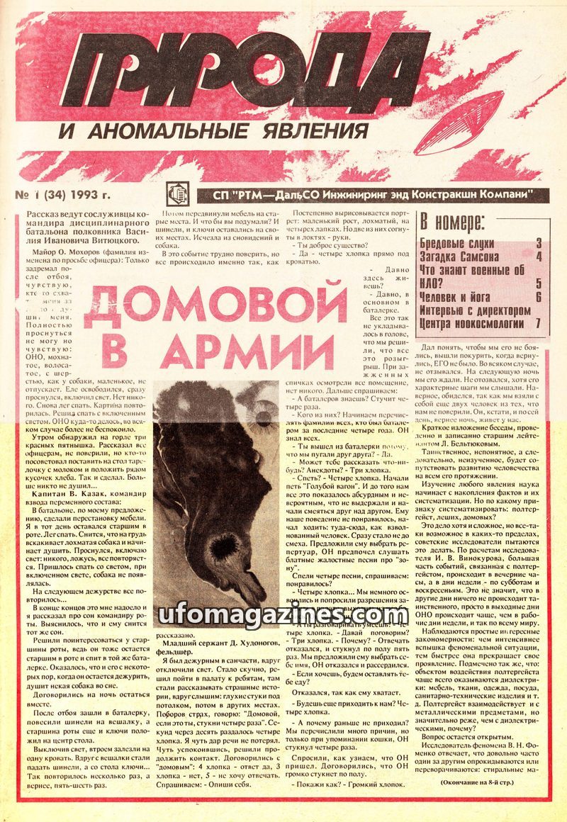 This issue delves into various anomalous phenomena, including alleged encounters with 'Domovoi' (household spirits) in a military setting, where soldiers reported strange occurrenc