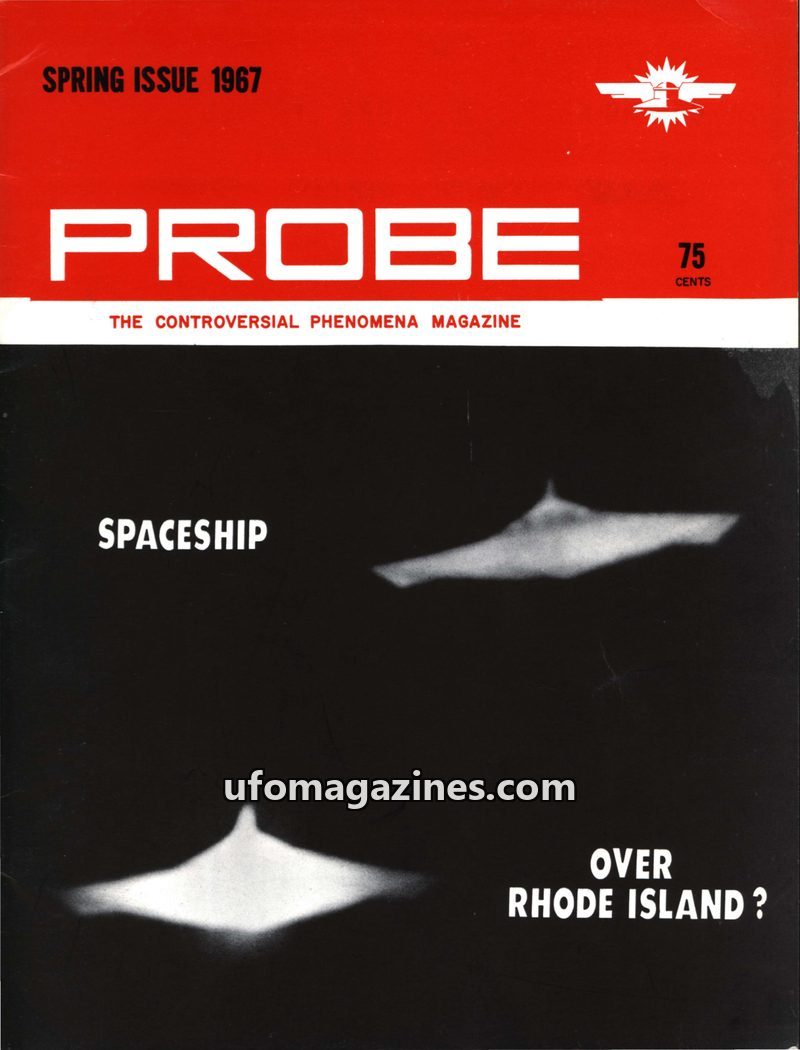 This issue of PROBE magazine focuses on a significant UFO sighting over Rhode Island in July 1966, with detailed accounts and photographs by Harold Trudel and Joseph Ferriere. It a