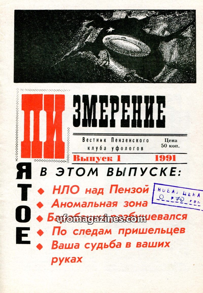 This issue of 'Zmerenie' magazine, the bulletin of the Penza Ufologists Club, focuses on unidentified flying objects (UFOs) and anomalous phenomena. It includes reports of UFO sigh