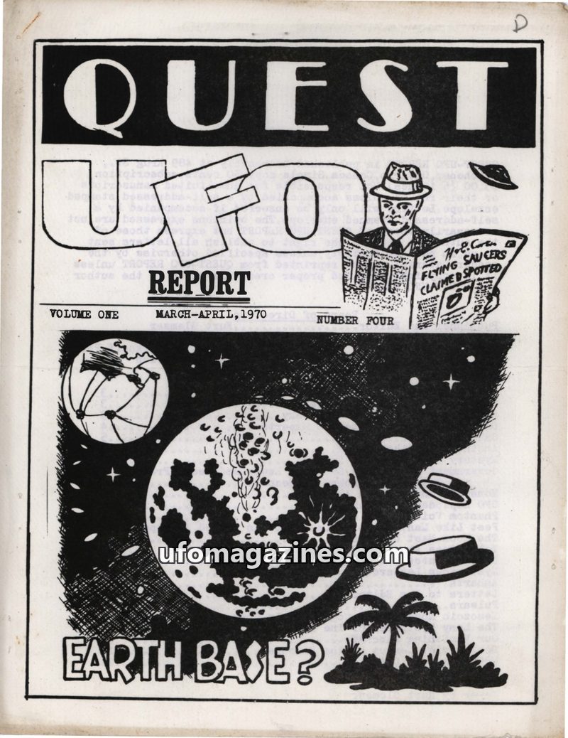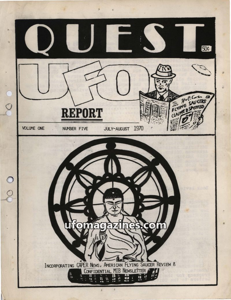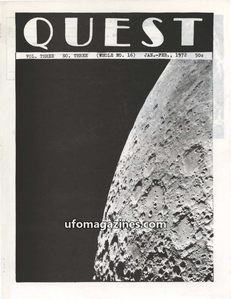 This issue of QUEST UFO REPORT from July-August 1970 covers a wide range of unexplained phenomena. It details numerous UFO sightings, including pulsating objects accompanying Apoll
