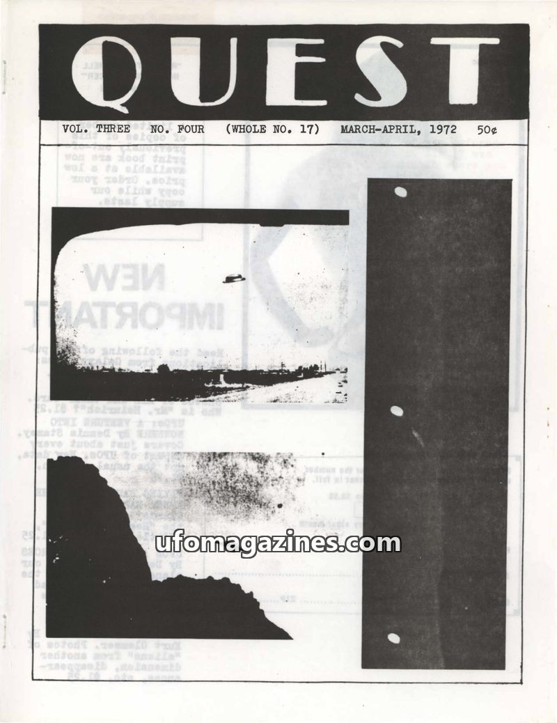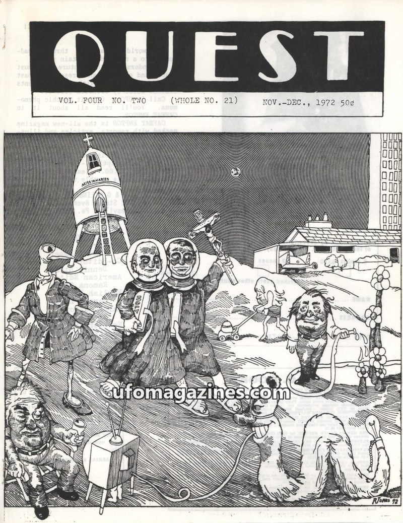 This issue of QUEST magazine from May-June 1972 delves into the persistent mystery of flying saucers, presenting historical accounts and official statements that suggest their real