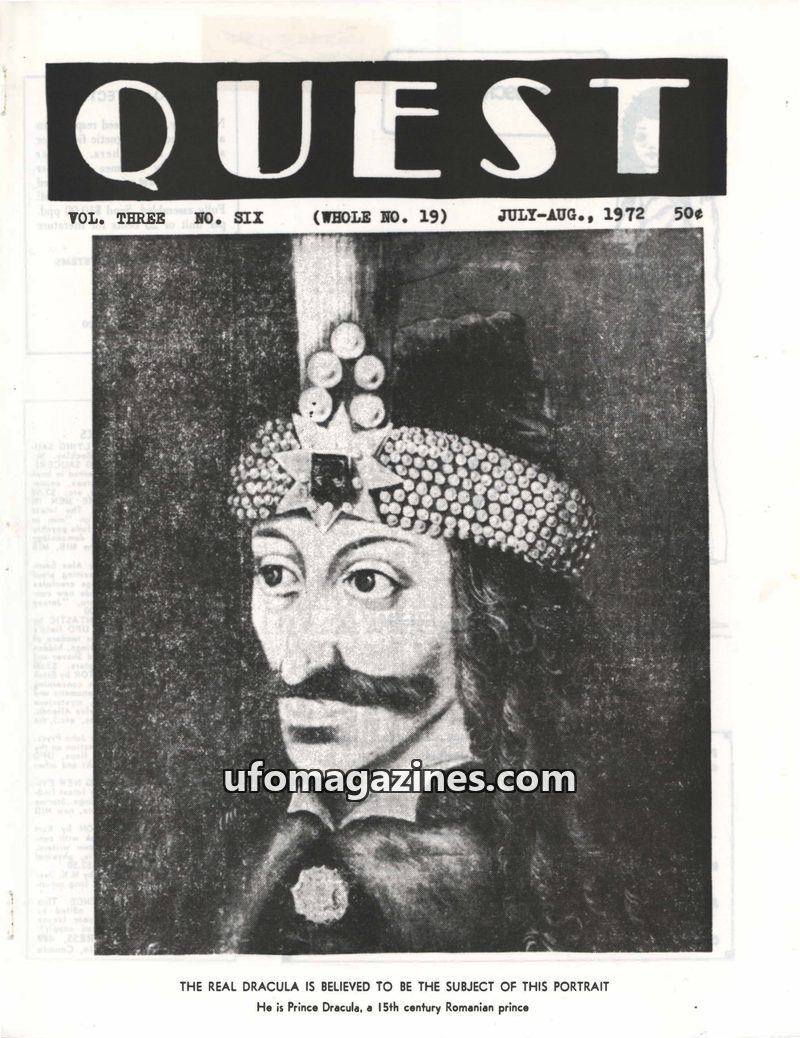 This issue of QUEST magazine from July-August 1972 delves into various intriguing topics. It examines the historical figure believed to be the inspiration for Dracula, exploring hi