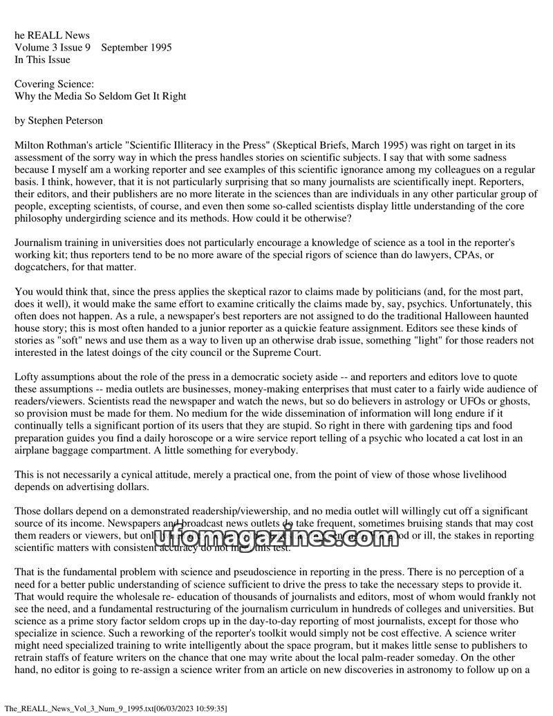 This issue of The REALL News critically examines the media's poor coverage of scientific subjects, attributing it to a lack of science education among journalists and editors, and