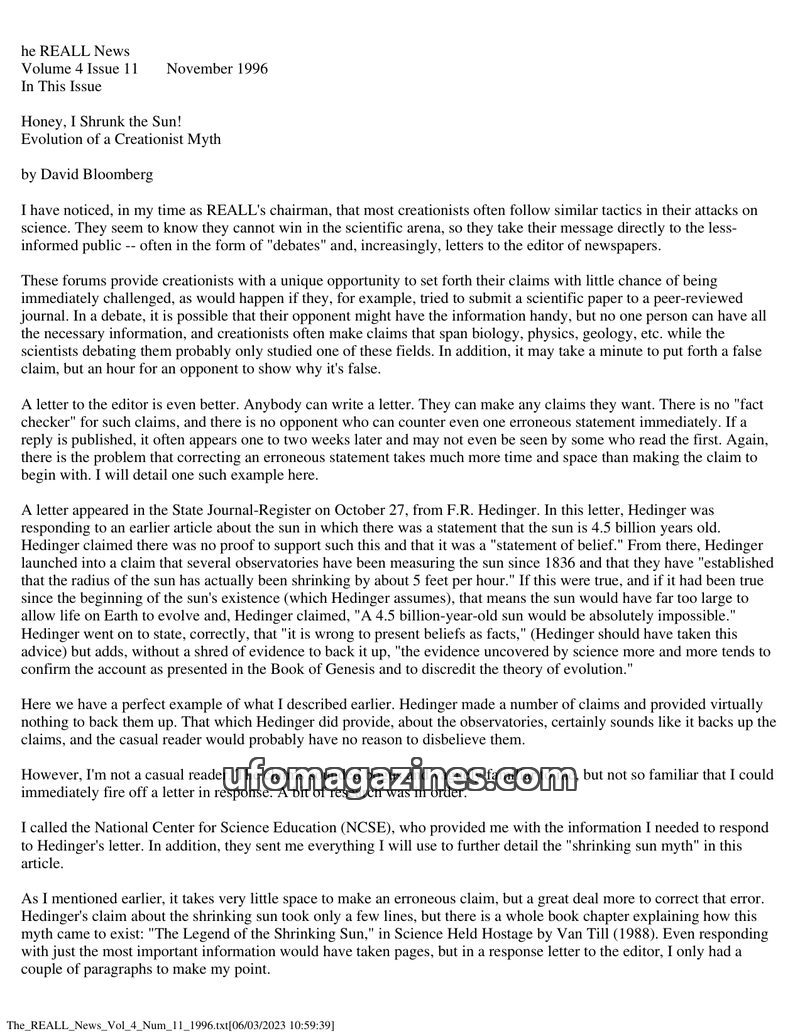 This issue of The REALL News tackles the creationist 'shrinking sun' myth, tracing its origins and debunking it with scientific evidence. It also examines the dangers of recovered