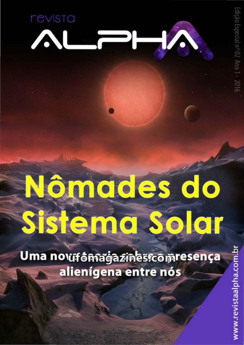 This special edition of Revista ALPHA features ufologist Nelson Pescara's theory, 'Nômades do Sistema Solar,' which posits an aggressive alien presence among us. The article aims t