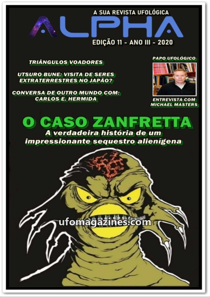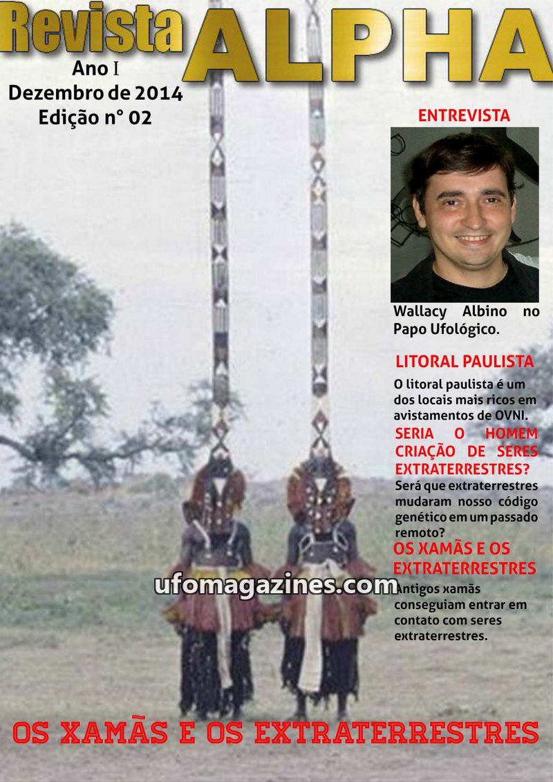This issue of Revista ALPHA focuses on ufological phenomena in Brazil. It features an interview with ufologist Wallacy Albino, discussing the 'Caso Varginha' and UFO activity on th