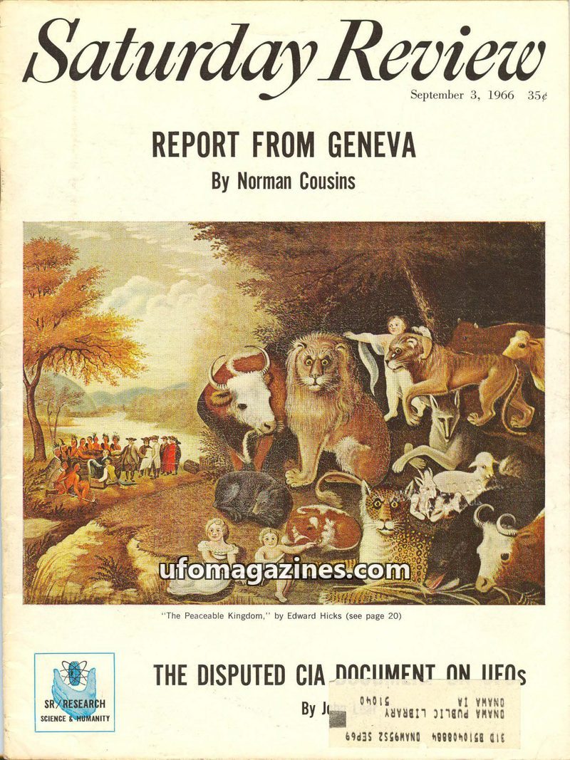 This issue of Saturday Review delves into the controversy surrounding a CIA-edited document related to UFO investigations. The article highlights the findings of the 1953 Robertson