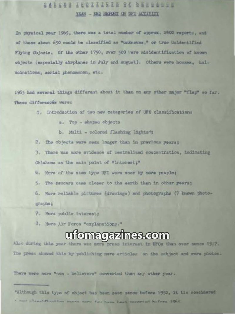 Saucer Institute of Research - Annual Report - 1965
