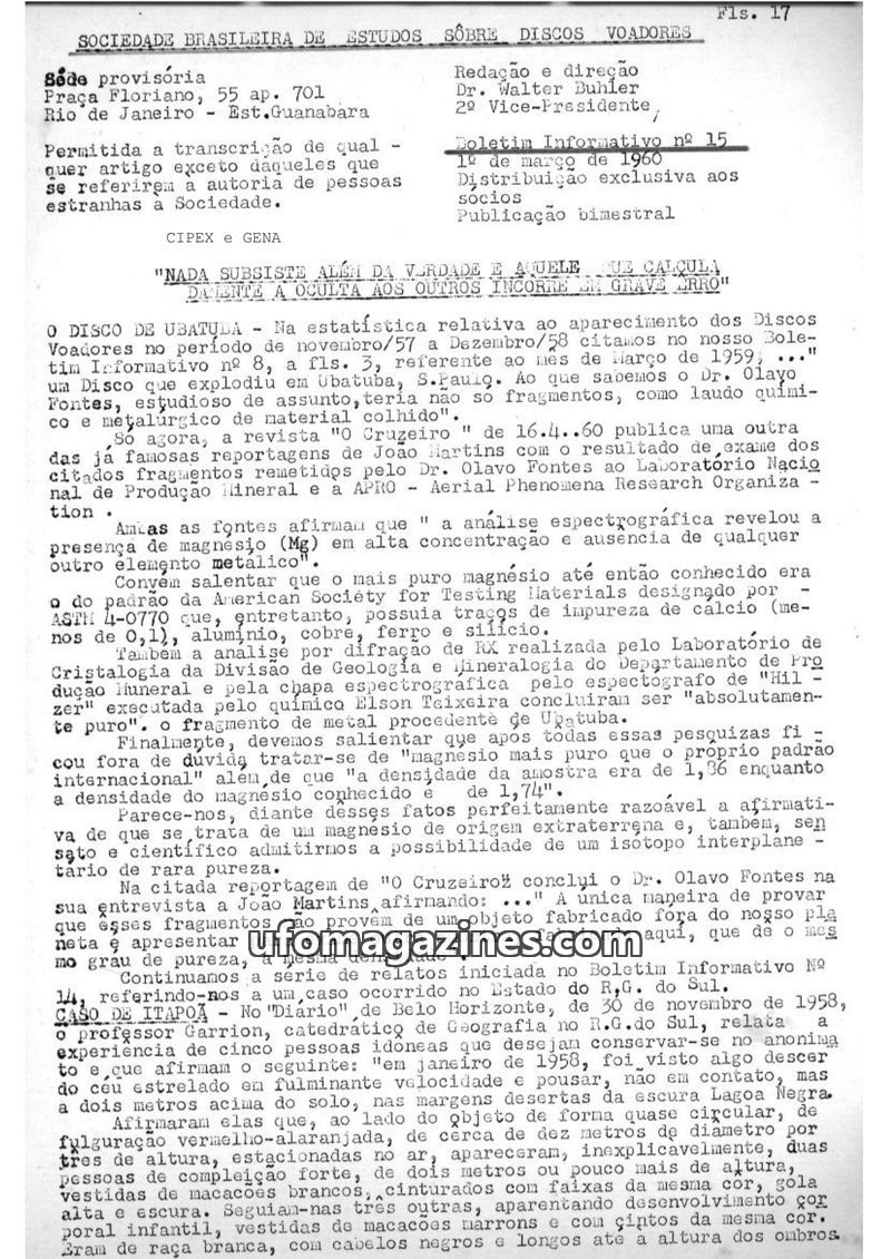 This issue of the Brazilian UFO journal details the analysis of fragments from a reported UFO crash in Ubatuba, Brazil, which revealed a high concentration of pure magnesium. It al