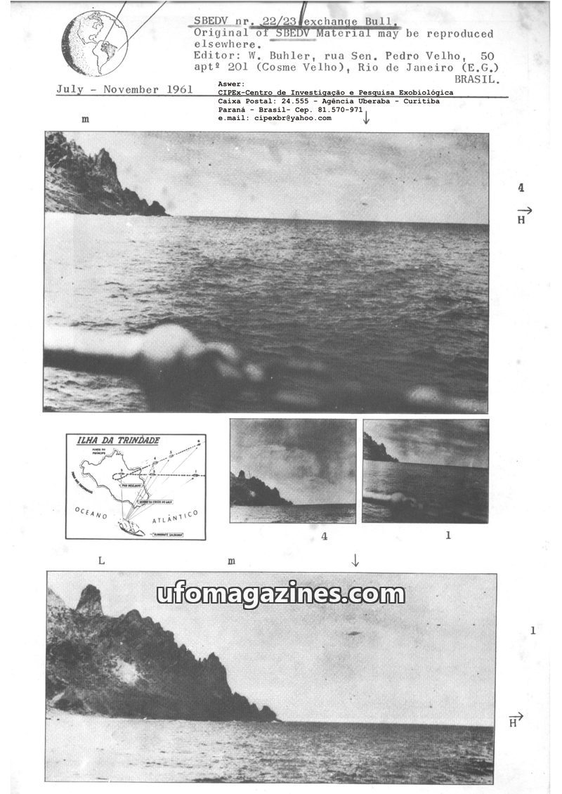 This issue of the SBEDV Exchange Bulletin details several Flying Saucer (F.S.) sightings and investigations from Brazil and New Zealand. It includes photographic evidence from Ilha