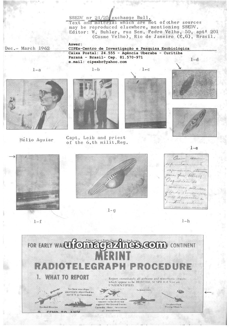 This issue of SBEDV exchange Bull. (nr. 24/25) covers UFO reports from Brazil and Australia, including detailed accounts and photographic evidence. It highlights the case of Hélio