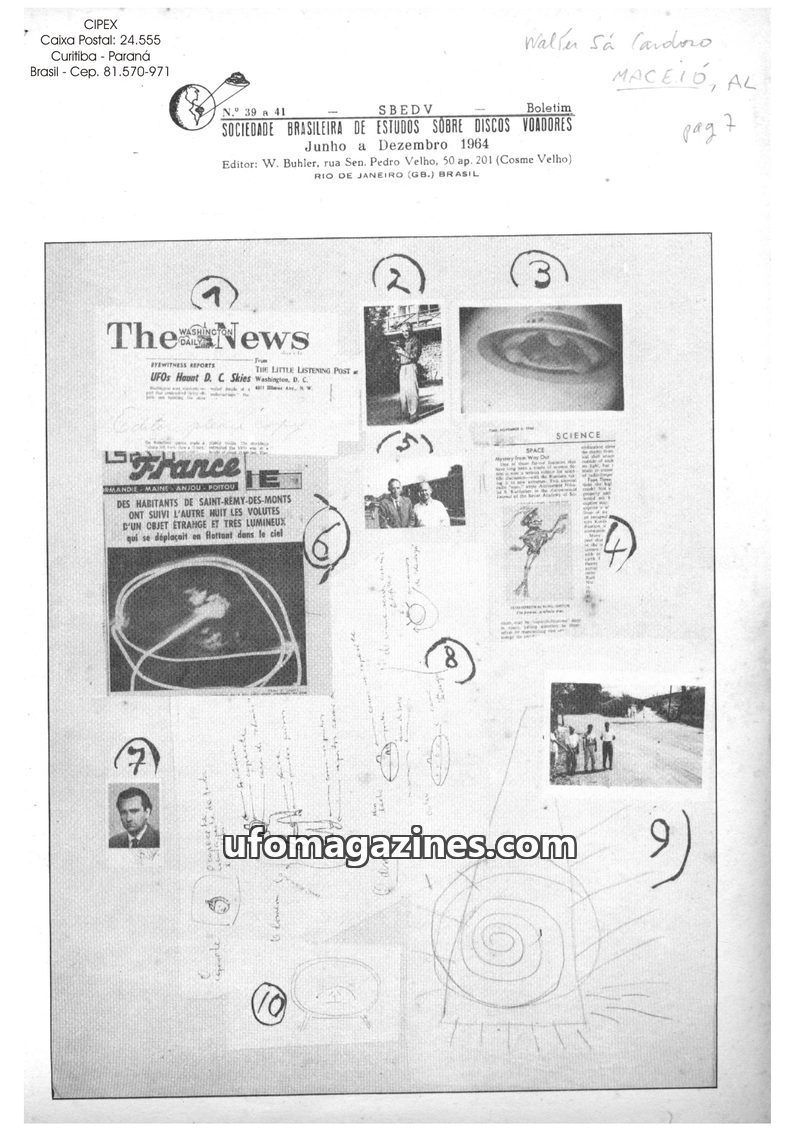 This issue of the SBEDV Bulletin covers UFO research in Brazil during the mid-1960s. It details two significant witness accounts: the J.A.A. incident involving a mysterious shadow