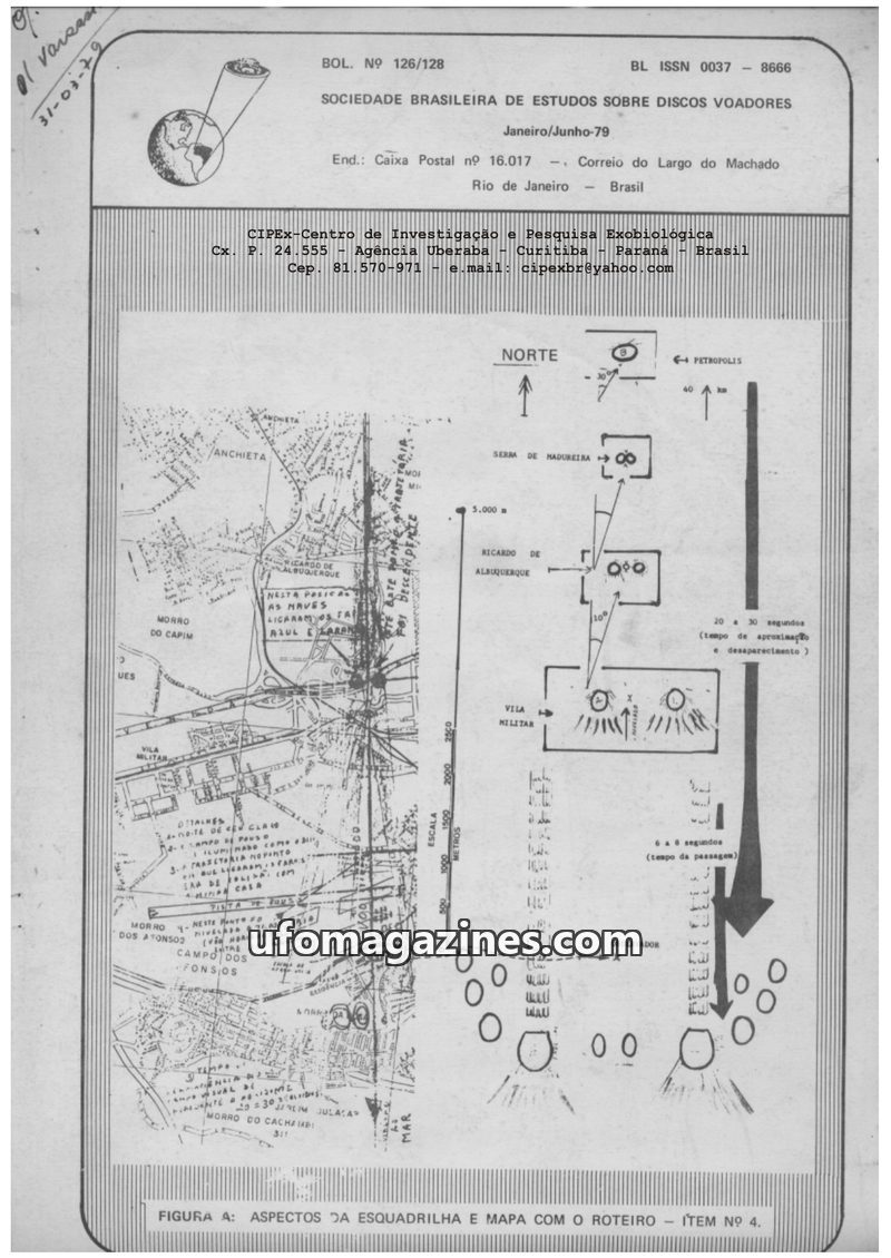 This issue of the SBEDV bulletin from January-June 1979 details various UFO sightings and encounters in Brazil. It includes a report on a UFO squadron over a Brazilian Air Force Ba