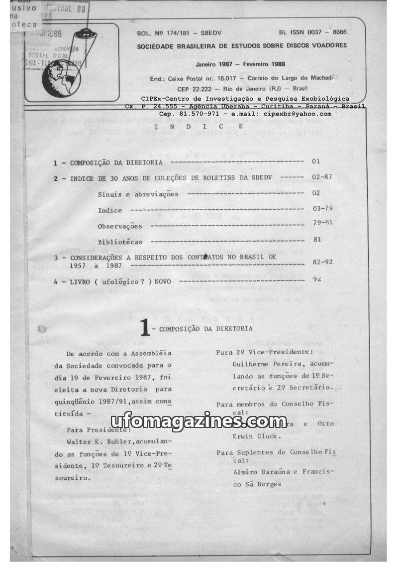 This issue of CIPEX e GENA, published by the Sociedade Brasileira de Estudos Sobre Discos Voadores (SBEDV), covers the period of January 1987 to February 1988. It includes the new