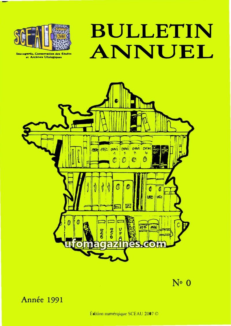 This issue, the first 'Bulletin Annuel' from SCEAU (Sauvegarde, Conservation des Etudes et Archives Ufologiques), published in 1991, serves as an informational bulletin for members