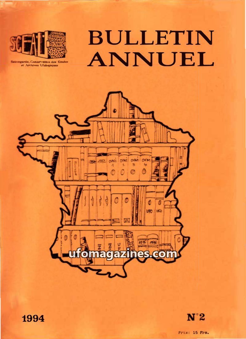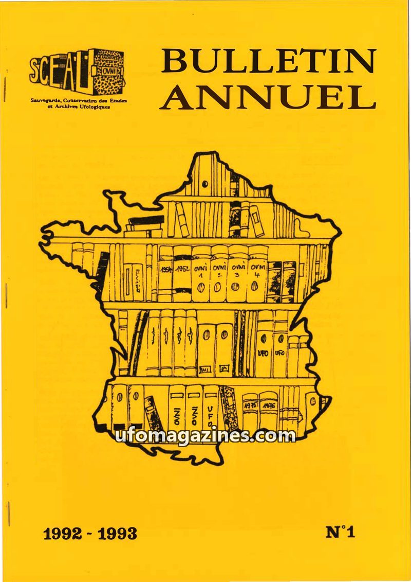This issue of the SCEAU/Archives OVNI annual bulletin covers the period 1992-1993. It details the association's activities, including the preservation and cataloging of UFO-related
