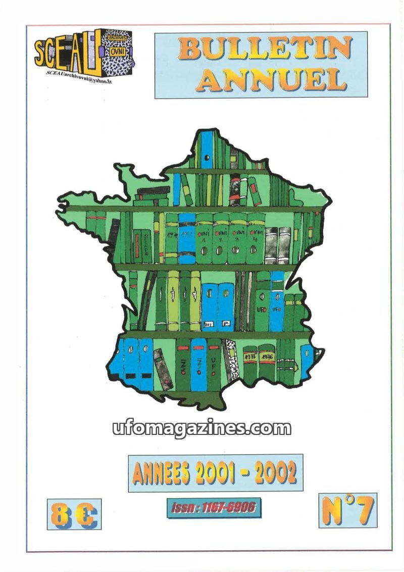This issue of the SCEAU Bulletin Annuel (N°7) covers the period 2001-2002 and highlights the association's activities in archiving ufological documents. A key theme is the enduring