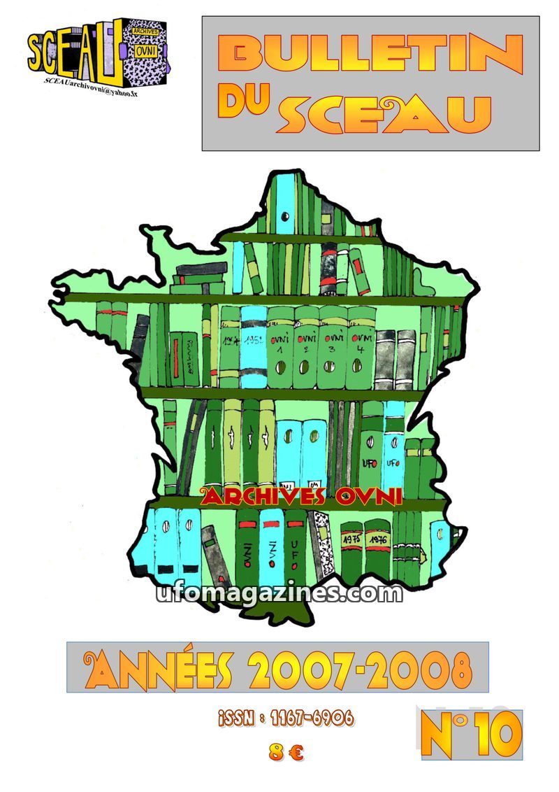 This issue of the SCEAU/Archives OVNI bulletin covers the years 2007-2008, detailing the association's activities in collecting, sorting, and preserving ufological archives. It hig