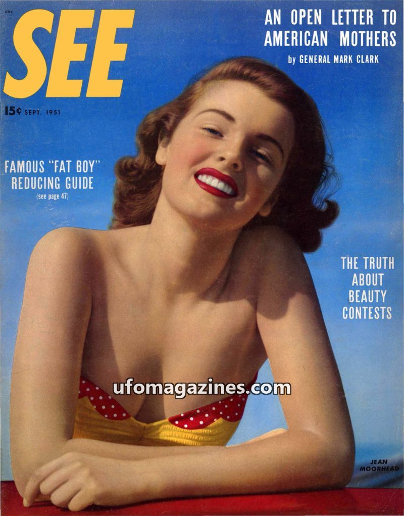 This issue of SEE magazine from September 1951 delves into the persistent mystery of flying saucers, presenting evidence that challenges the official explanation of weather balloon