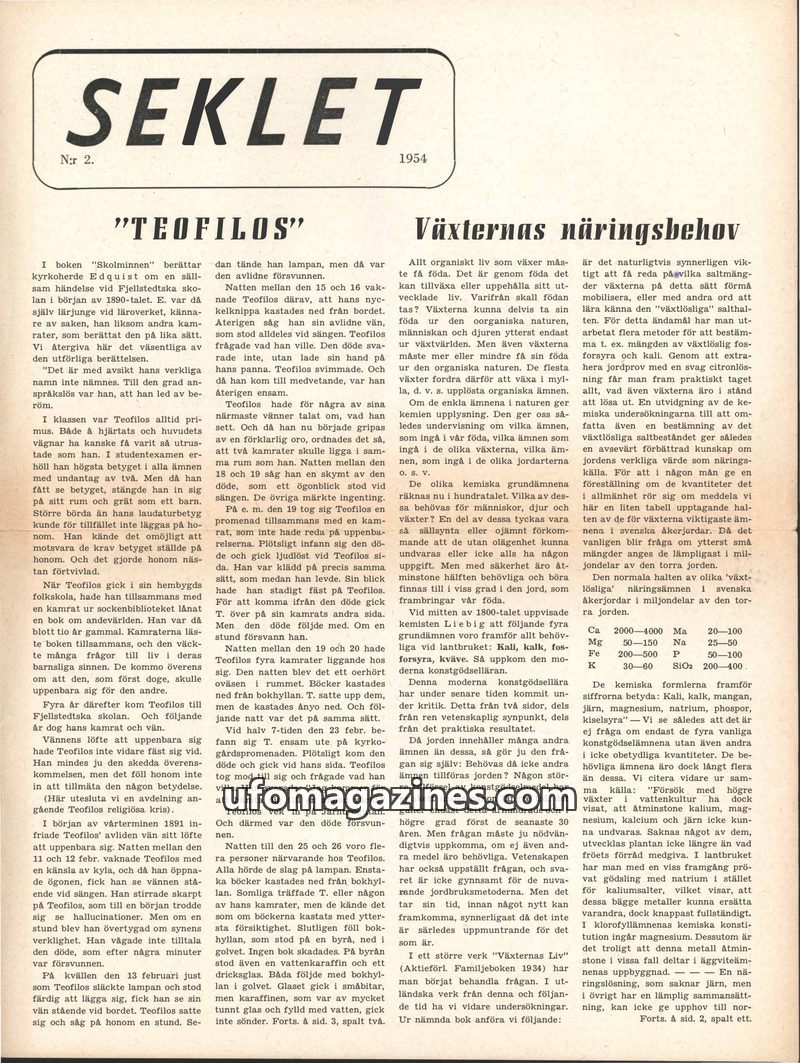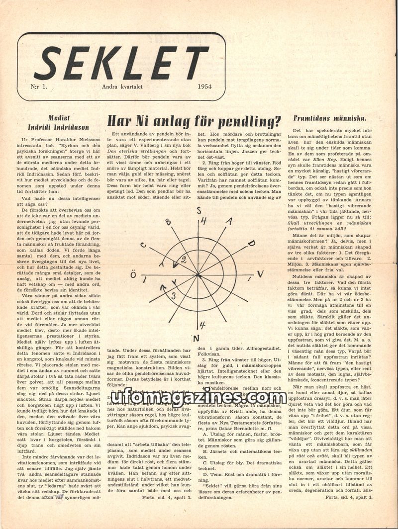 This issue of SEKLET from the second quarter of 1954 delves into various paranormal and spiritual topics. It features an account of the Icelandic medium Indridi Indridason, detaili