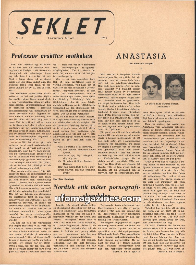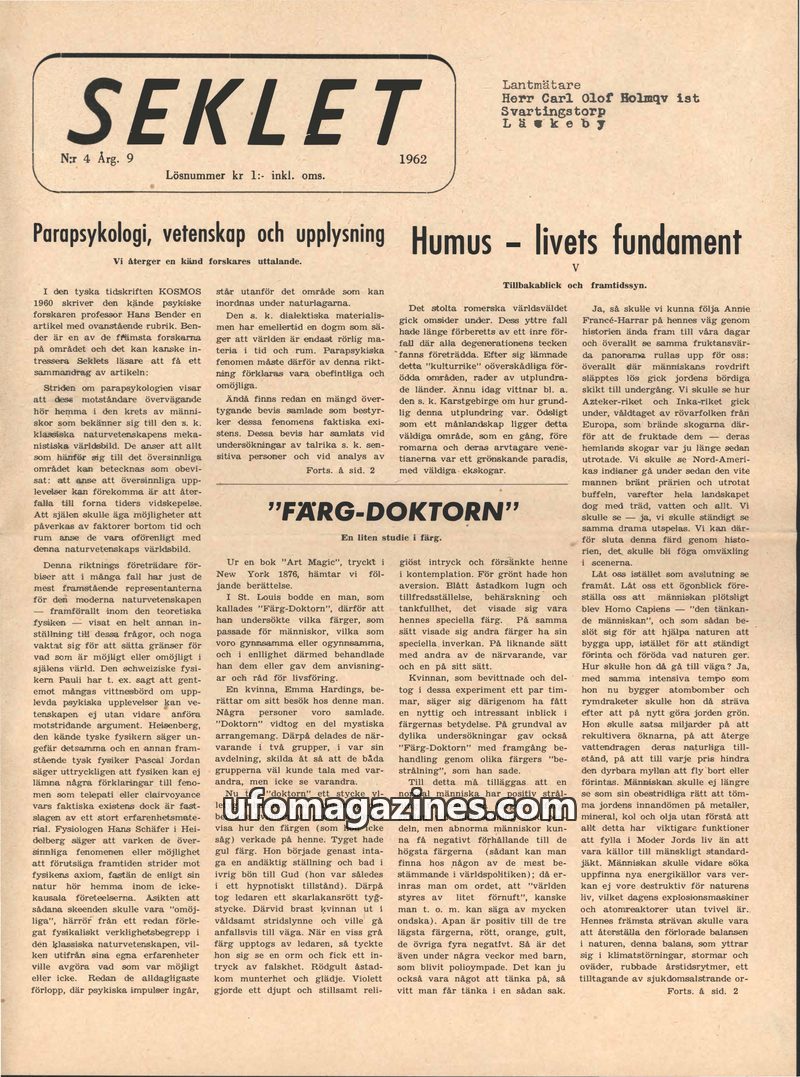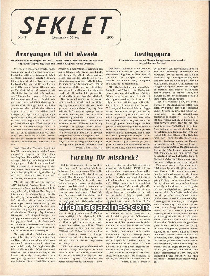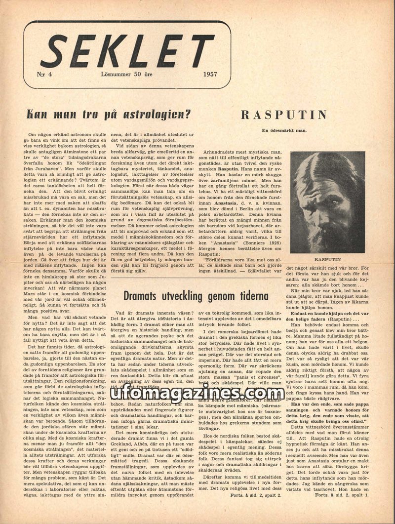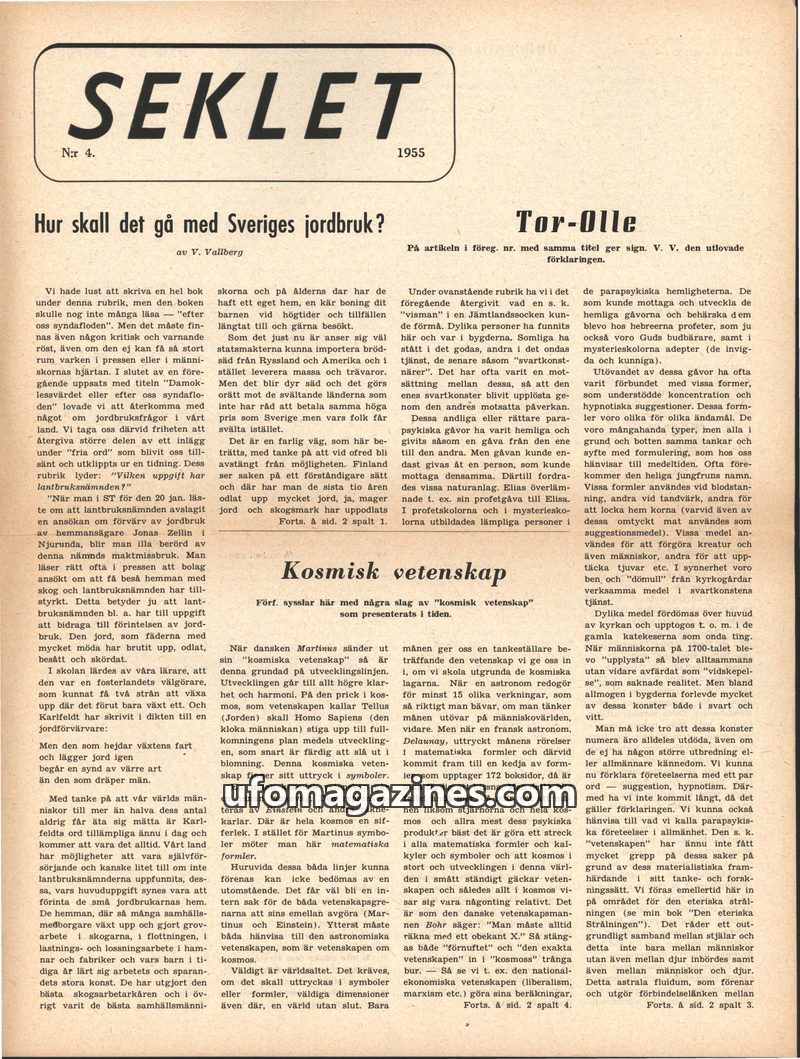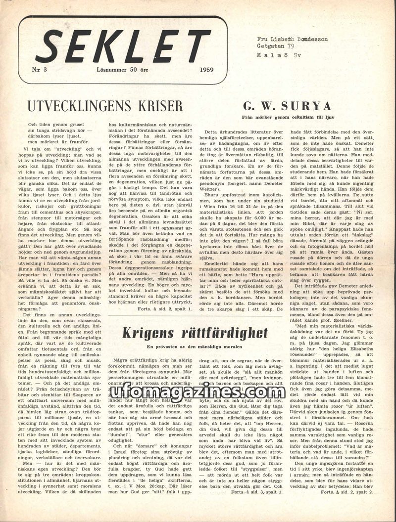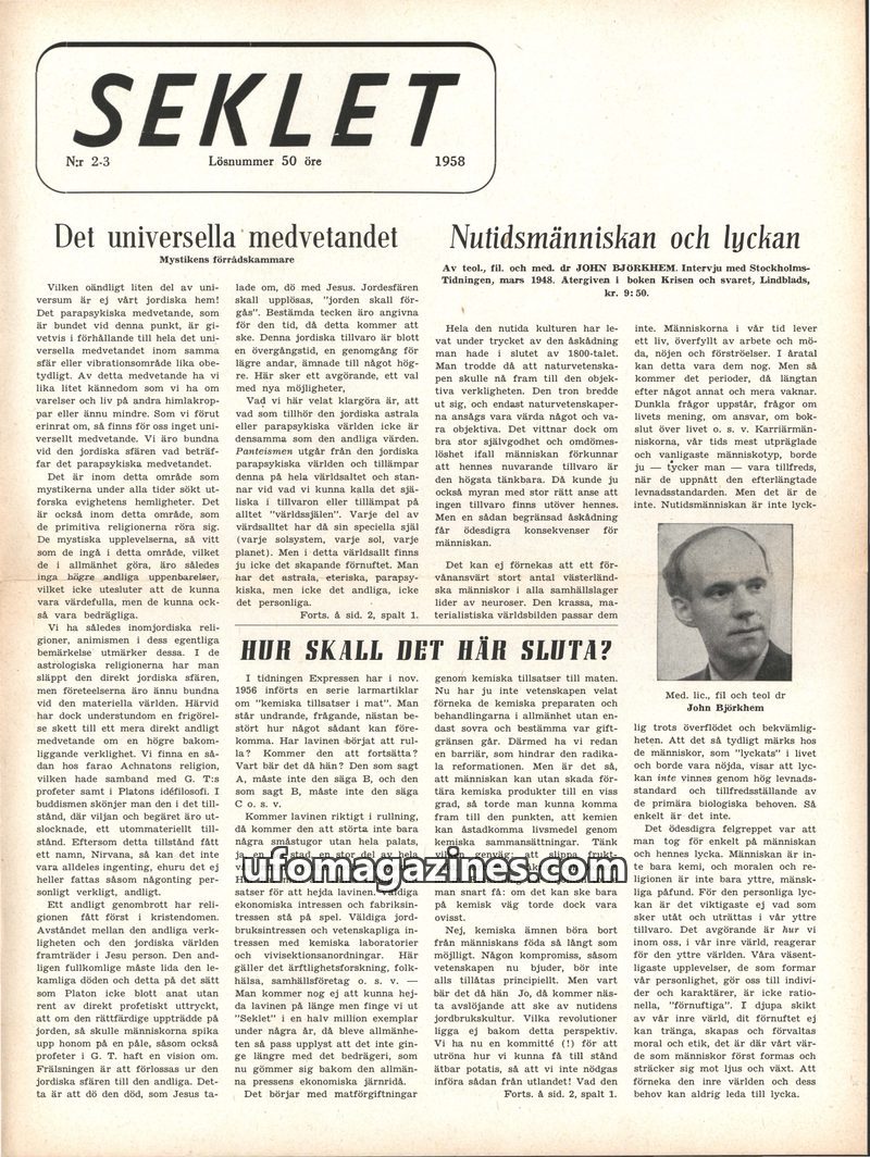 This issue of 'SEKLET' delves into various esoteric and practical topics. It features a story about Olle Andersson's psychic premonition of his wife's death and a chilling account