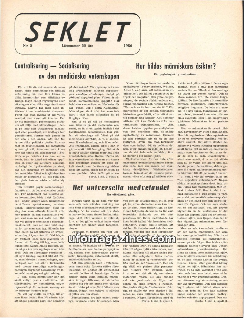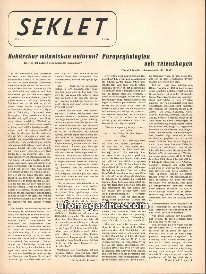 This issue of SEKLET from 1955 explores the complex relationship between humanity and nature, questioning who truly holds dominion. It delves into parapsychology, suggesting that s