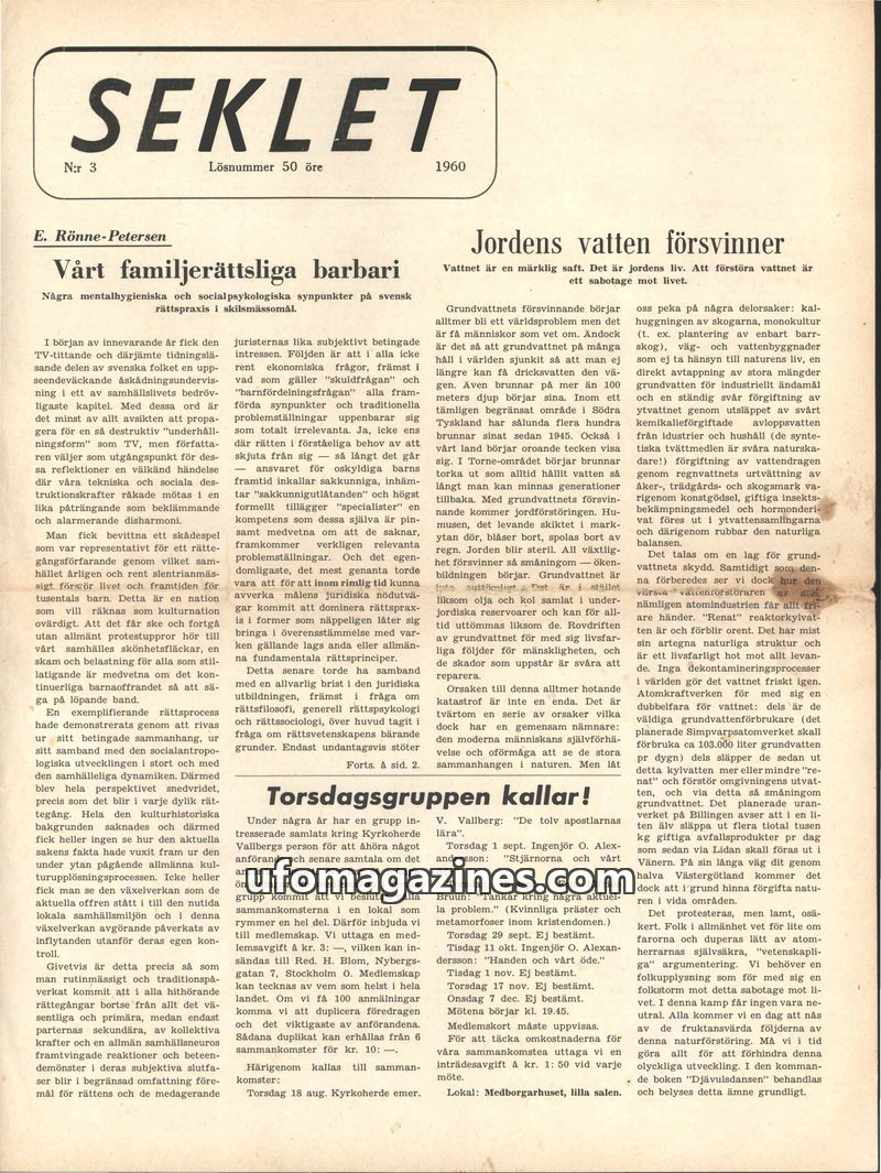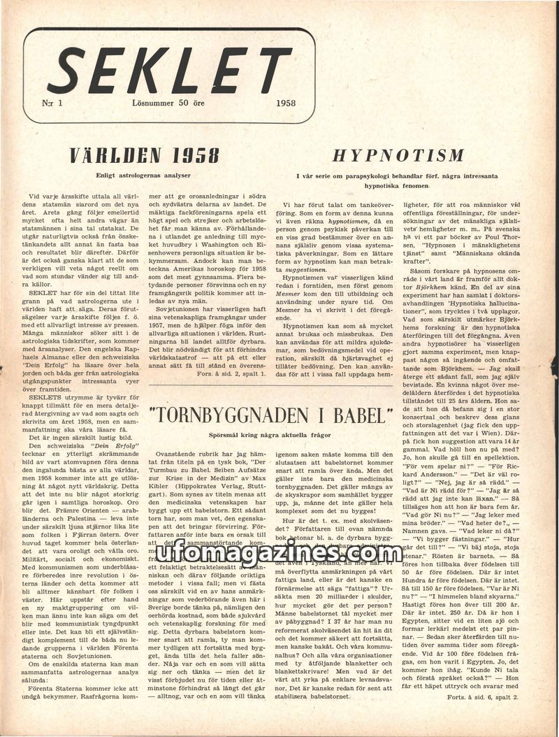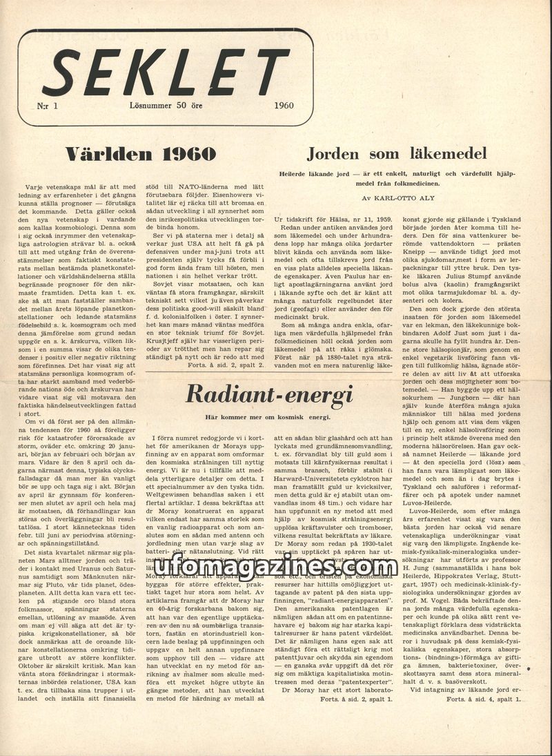 This issue of SEKLET from 1960 delves into various topics including cosmobiological predictions for the year, highlighting potential global catastrophes and geopolitical shifts. It