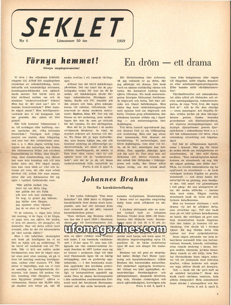 This issue of SEKLET from 1959 delves into various aspects of life and society. It critiques modern social habits, advocating for intellectual and artistic pursuits over superficia