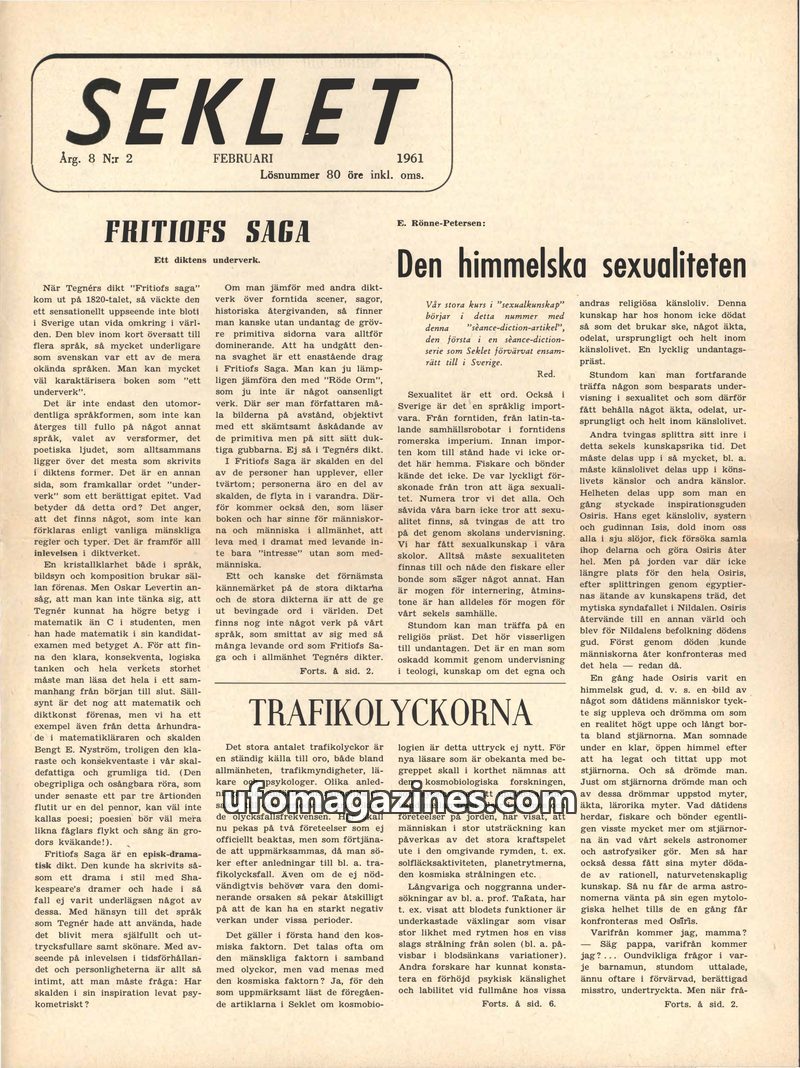 This issue of Seklet magazine delves into various topics, including an analysis of Esaias Tegnér's epic poem 'Fritiof's Saga', exploring its literary merit and psychological depth.