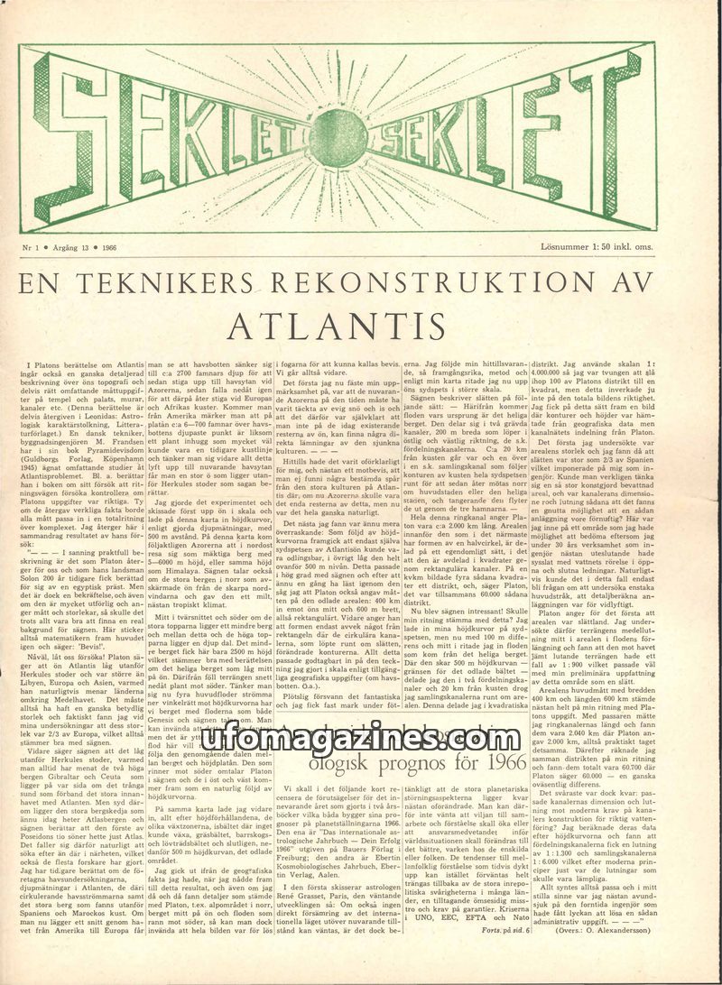 This issue of SEKLET from 1966 delves into various topics including a technical reconstruction of Atlantis based on Plato's writings, astrological and cosmobiological predictions f
