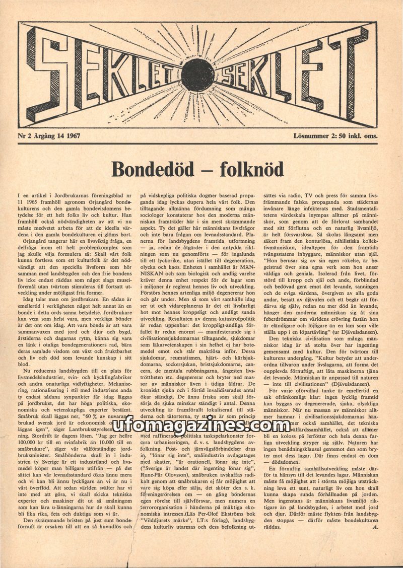 This issue of SEKLET magazine from 1965 emphasizes a return to nature's laws and holistic health, criticizing modern scientific and agricultural methods for their destructive impac