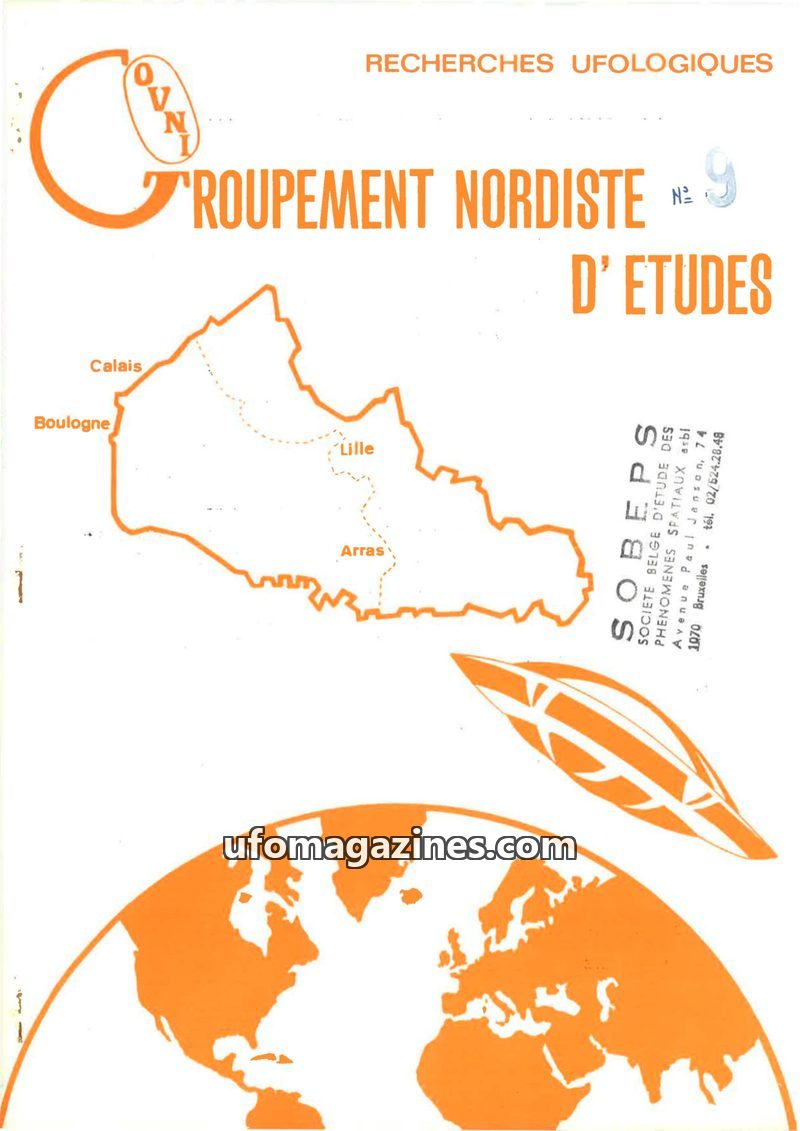 This issue of 'Groupement Nordiste d'Etudes Recherches Ufologiques' (Bulletin N° 9, 3rd quarter 1979) focuses on ufological research in Northern France and Belgium. It includes an