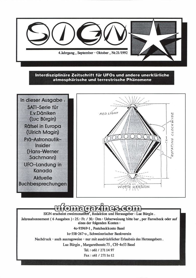 This issue of SIGN magazine, dated September-October 1992, features an exclusive report on a filmed UFO landing near Ottawa, Canada, on August 18, 1991. Investigations by UFO exper
