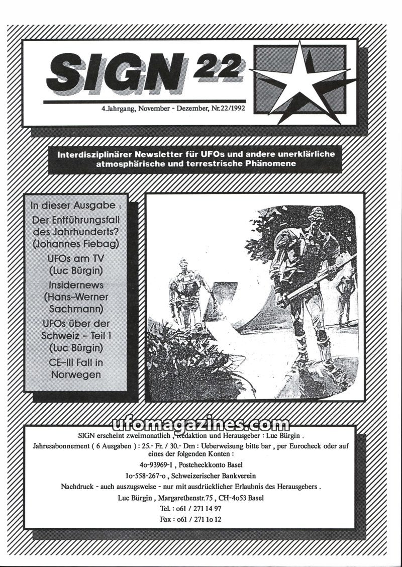 This issue of SIGN magazine, dated January-February 1993, covers various topics related to UFOs and unexplained phenomena. It includes an article by Peter Krassa detailing his pers