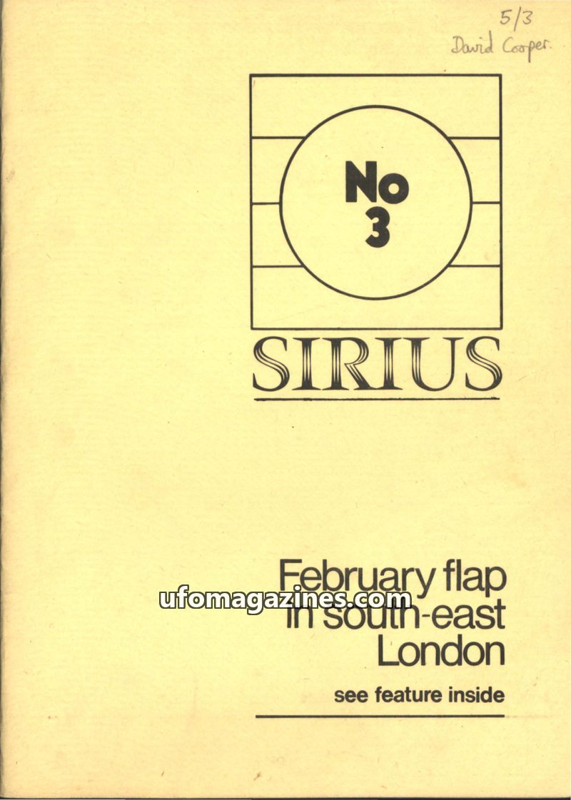 This issue of SIRIUS magazine (Vol 1 No 3, Jul-Sep 1971) details multiple UFO sightings in South-east London on February 22, 1971, including auditory and visual phenomena. It also