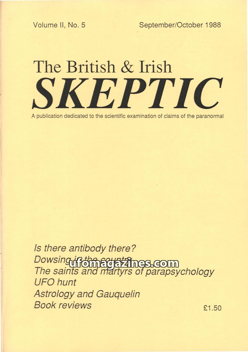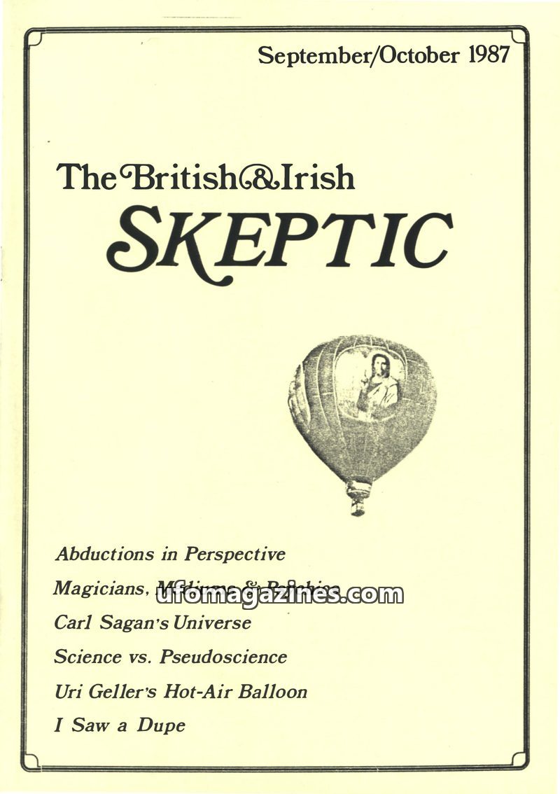 This issue of The British & Irish Skeptic, dated September/October 1987, features articles on UFO abduction stories, the nature of science versus pseudoscience, and an examination