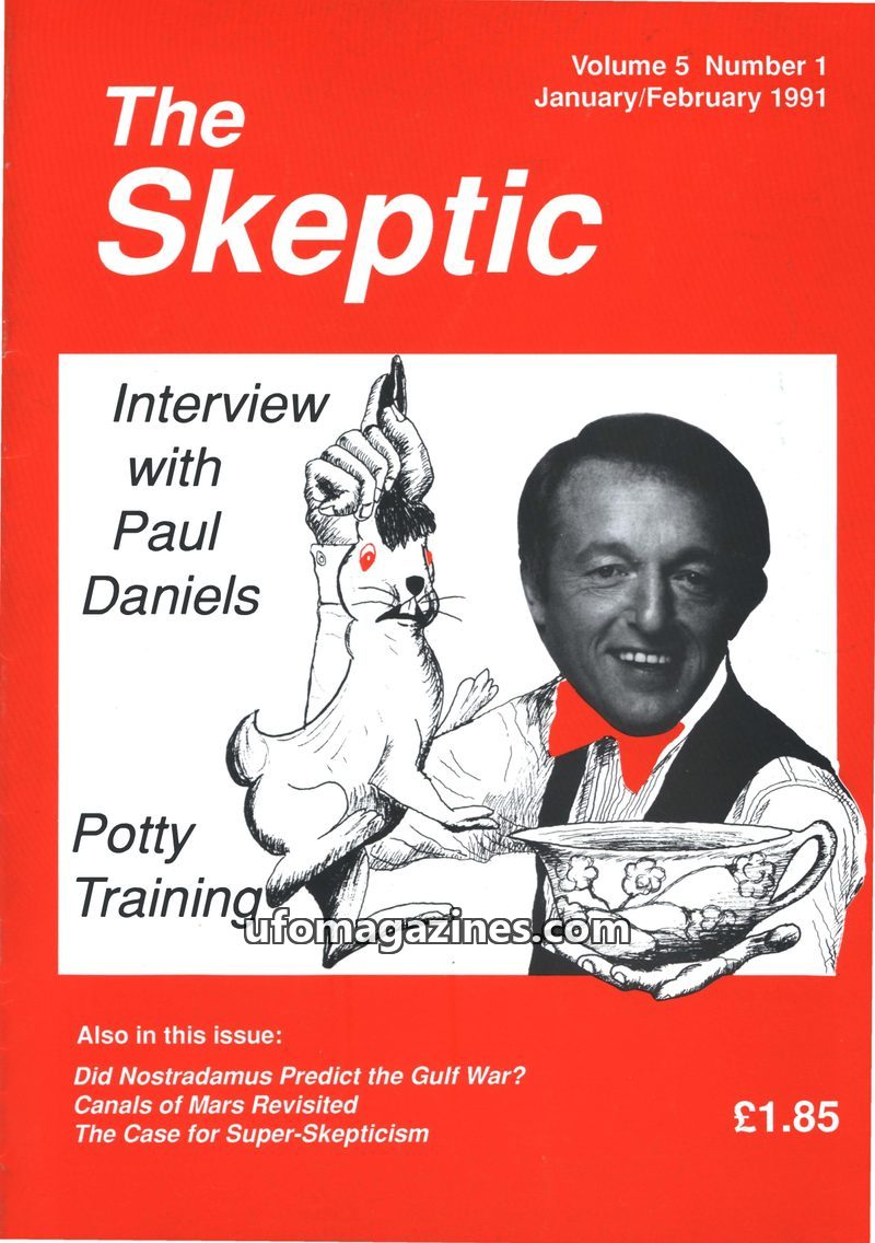 This issue of The Skeptic, dated January/February 1991, features an interview with skeptical entertainer Paul Daniels, discussing his views on paranormal phenomena and education. O