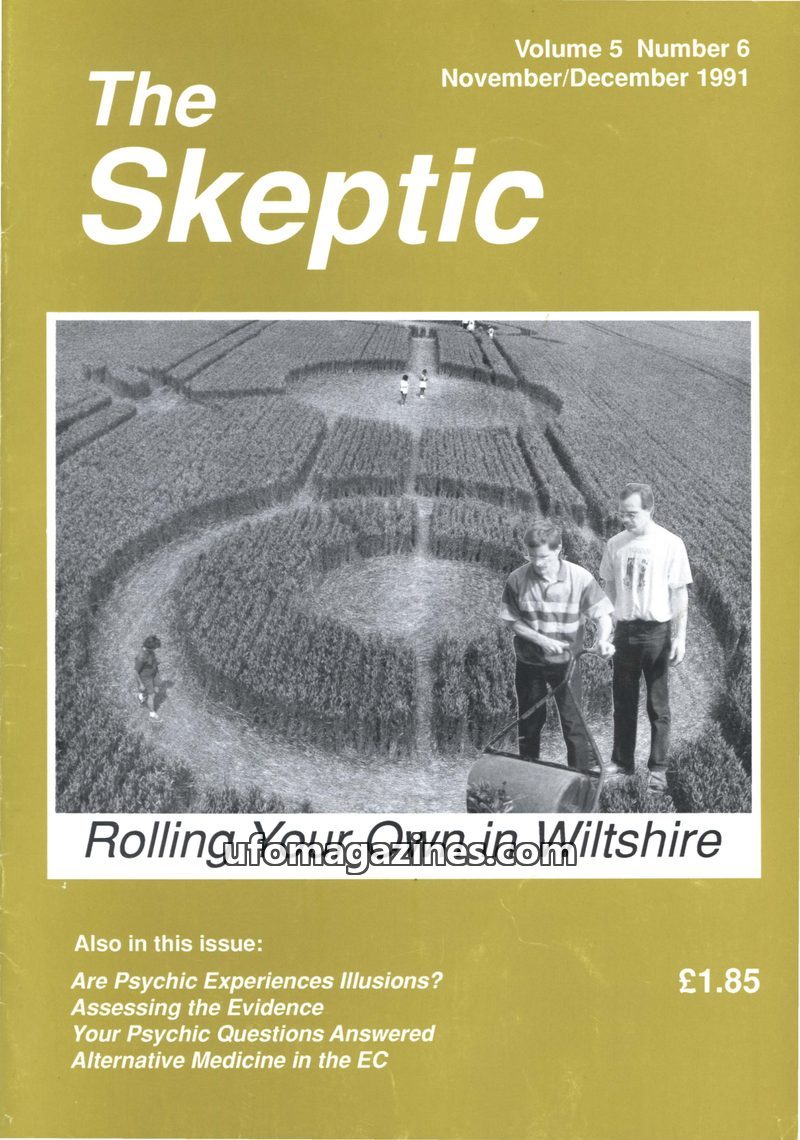 This issue of The Skeptic, dated November/December 1991, features articles on crop circles, psychic phenomena, and alternative medicine. Steve Donnelly debunks Uri Geller's claims
