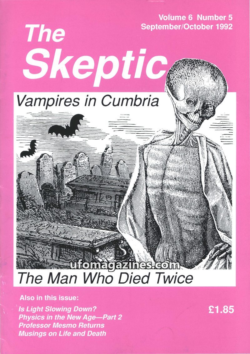 This issue of The Skeptic delves into various paranormal claims and skeptical investigations. It features an article on 'Vampires in Cumbria' detailing a historical case, and a 'Pa