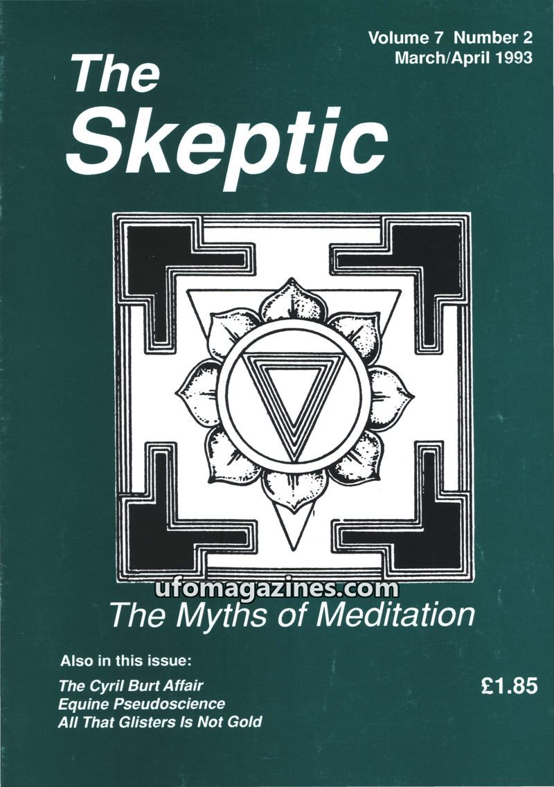 This issue of The Skeptic, dated March/April 1993, delves into various topics including the alleged fraud surrounding psychologist Sir Cyril Burt, the pseudoscience of equine pract