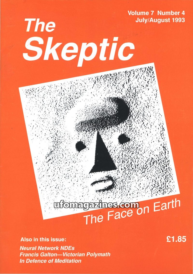 This issue of The Skeptic, dated July/August 1993, delves into various phenomena from a skeptical viewpoint. It features an in-depth look at the 'Face on Mars' anomaly, comparing i