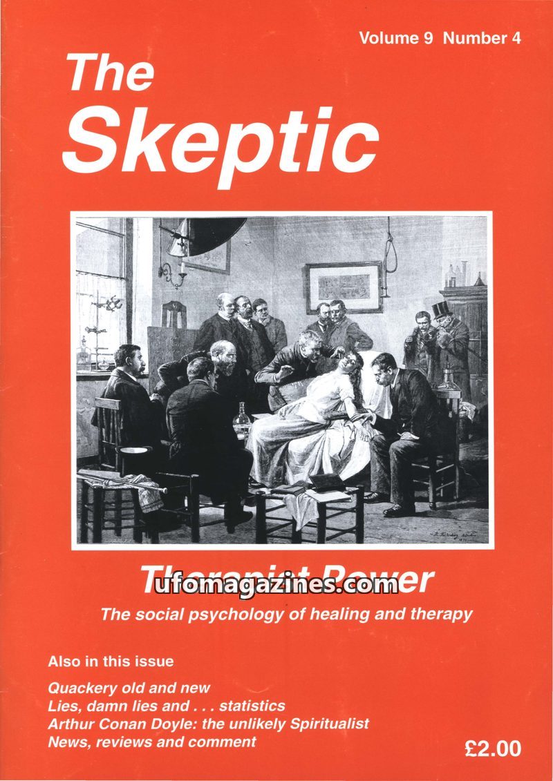 This issue of The Skeptic, Volume 9 Number 4, 1995, delves into 'Therapist Power' and the social psychology of healing. It features articles on quackery, statistics, Arthur Conan D