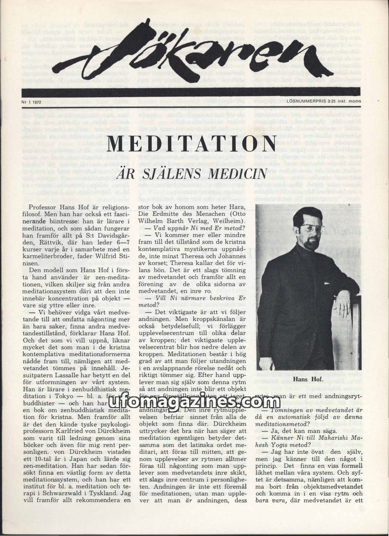 This issue of Sökaren magazine delves into various topics including meditation, its effects, and its relation to mysticism. It features an article on a Zen-style meditation course