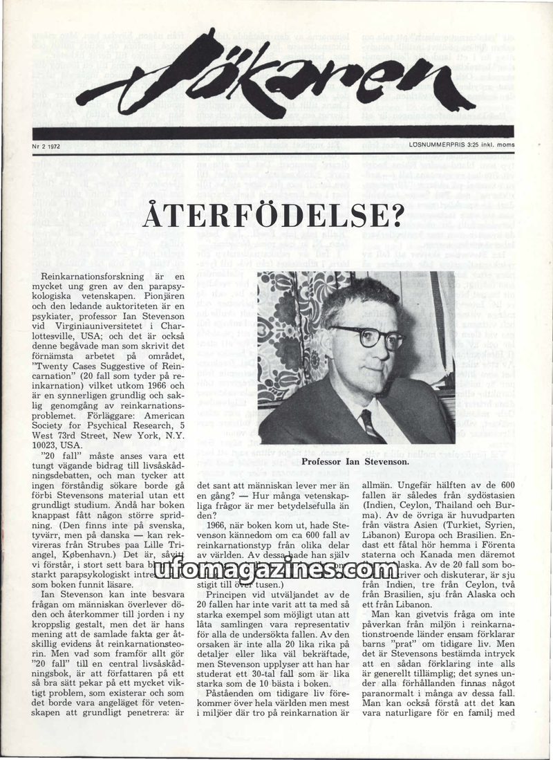 This issue of Sökaren magazine delves into parapsychological phenomena, featuring an in-depth look at Ian Stevenson's research on reincarnation, including the case of Gnanatilleka.